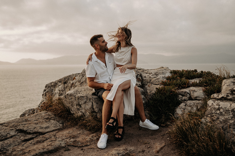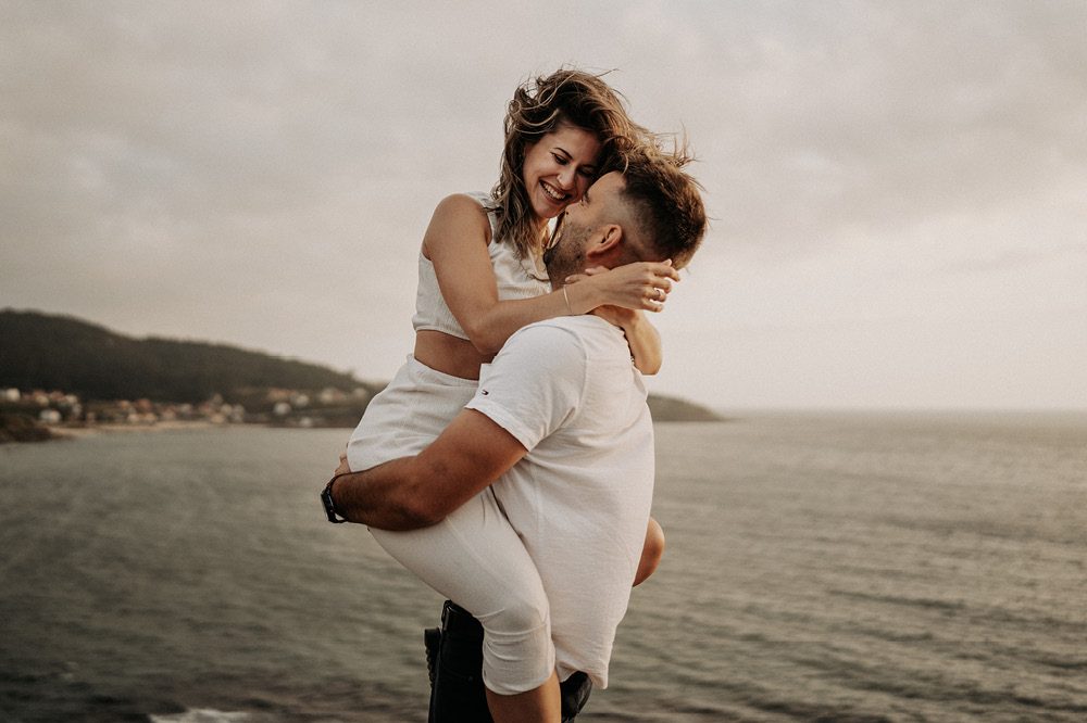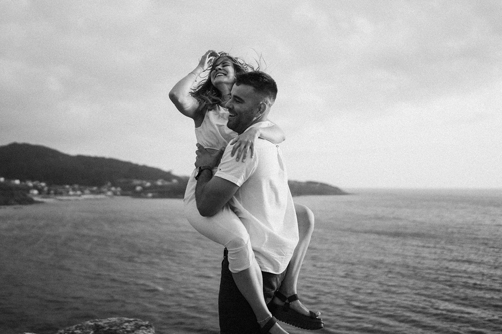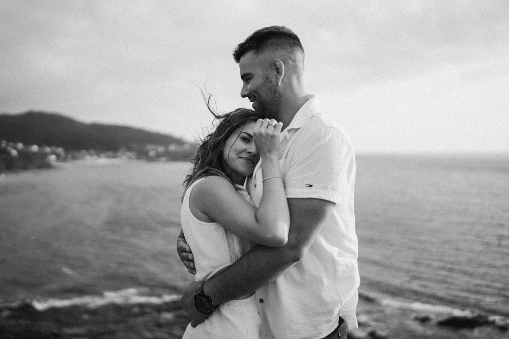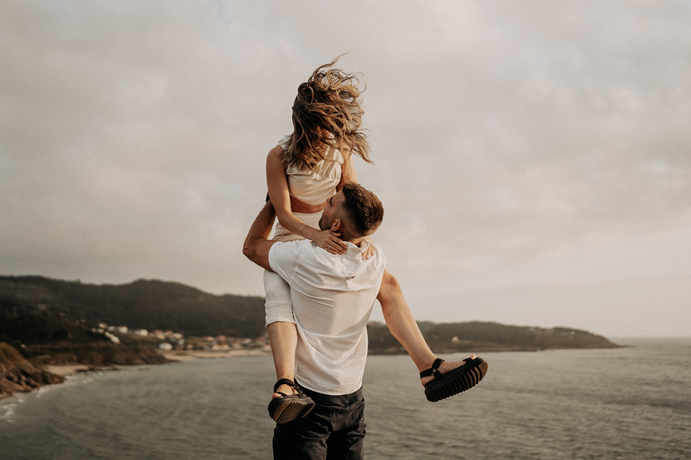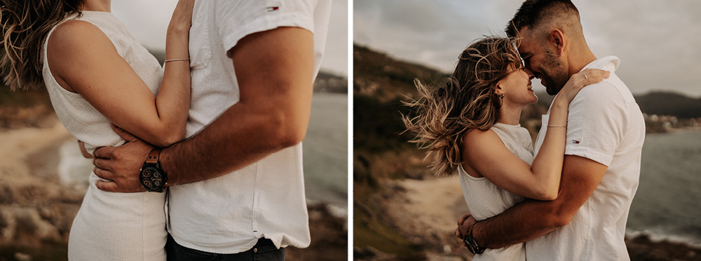 Esta pareja está muy vinculada a Porto do Son, donde viven, por lo que la preboda se realizó muy cerca aprovechando el increible entorno costero que tiene la zona, donde el mar y el Monte Louro en la lejanía hicieron de telón de fondo durante toda la sesión.