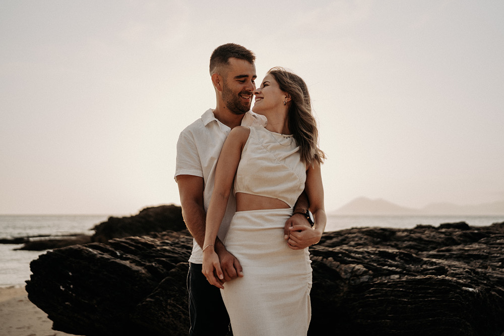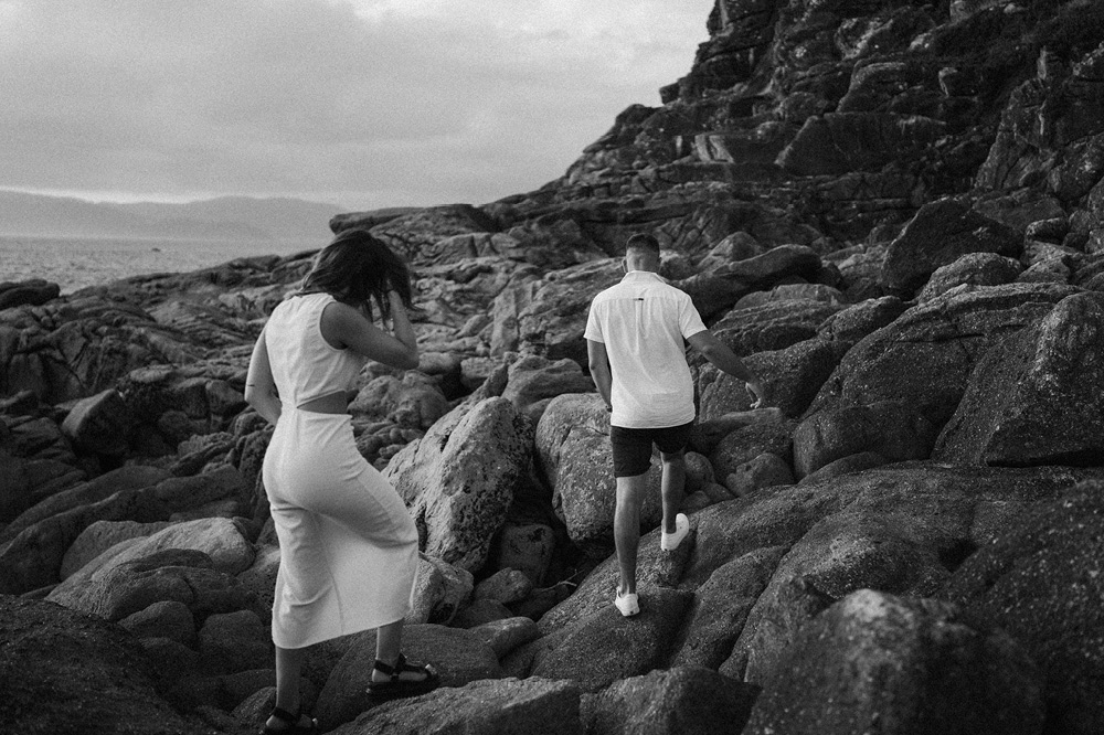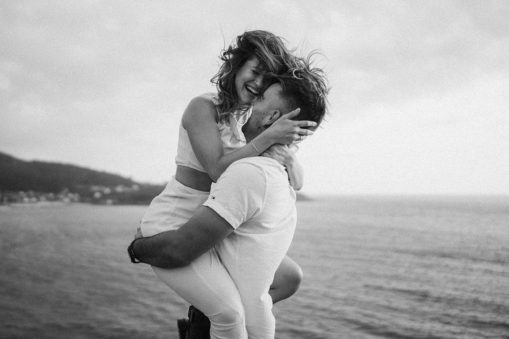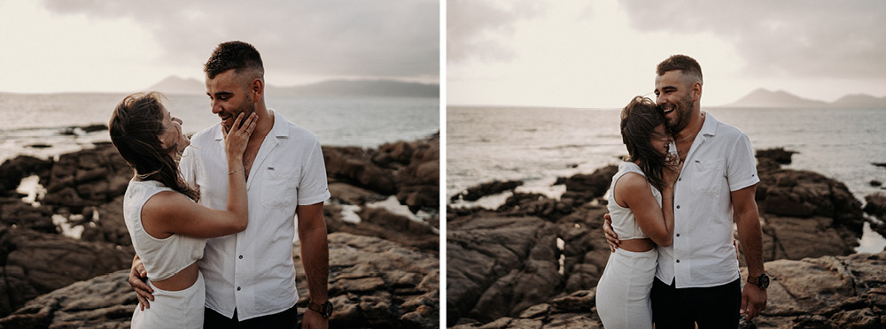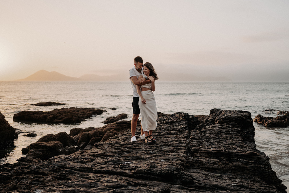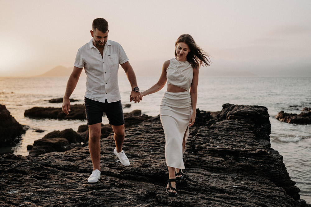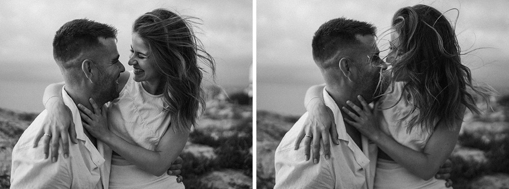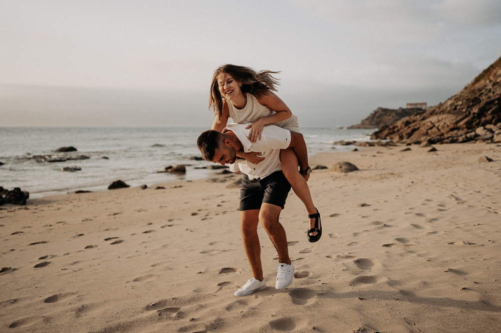 Estos dos torbellinos no pararon de bromear y reirse durante toda la sesión, y es que te acabas contagiando de su humor y su alegría, algo que se nota en el resultado. Disfrutamos de los cortados y la playa solitaria para nosotros solos en un día un tanto revuelto, que aumentó todavía más la atmósfera del lugar.